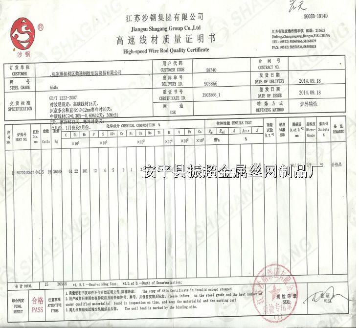 65猛鋼具有優(yōu)良的抗磨性是重要的制作礦篩鋼絲網(wǎng)的材質(zhì),由于很多用戶朋友對于65猛鋼了解性不夠,防范意識不強,現(xiàn)今市場上用普通鋼代替65錳的現(xiàn)象已成普遍現(xiàn)象,絲徑越大這種現(xiàn)象越明顯,這是因為絲徑越大短時間內(nèi)差別越小,按道理來說65猛要比普通鋼耐用,應(yīng)用時間要長一些,但這也看具體使用情況,如果65猛一天用20小時,普通鋼一天用10小時,看似都是一天,使用強度是不一樣的,在有就是操作是否恰當,由于操作不當?shù)哪p情況也是不一樣的,如果在同樣的使用條件下,在合理的規(guī)格之內(nèi),65猛絕對是比普通鋼耐用的,這點是毋庸質(zhì)疑的,有些客戶問如果用65猛能用多長時間,10天,1個月還是3個月,這哪個廠家都不可能去保證,除非是非常了解用戶的使用勞動強度,對工人的操作情況十分了解,不然的話怎么去保證,65猛是不能通過外表生不生銹判斷的,也不知道有些客戶是從哪了解到的,認為65猛是不會生銹的,還有的認為65錳用吸鐵石吸不住,這都是沒有一點根據(jù)的,65猛會生銹的,也是會被吸鐵石吸住的,這點和普通鋼是沒有區(qū)別的,因此不能根據(jù)這些判斷,如果鑒別65錳和普通鋼的區(qū)別以前有文章我們介紹過,想了解的客戶朋友可以多看看,我們建議客戶的是不管訂購哪家的65猛鋼篩網(wǎng),都要向廠家要一份材質(zhì)證明單,如果在使用中感覺不對,可以化驗,在對比提供的材質(zhì)單是否吻合,這樣也會約束廠家不會輕易的用普通鋼代替65錳鋼,以次充好。 安平縣振超金屬絲網(wǎng)制品廠專業(yè)生產(chǎn)65錳鋼礦篩網(wǎng),品質(zhì)保證,質(zhì)優(yōu)價廉。 振超網(wǎng)業(yè)http://www.96cpvip8168.cn |